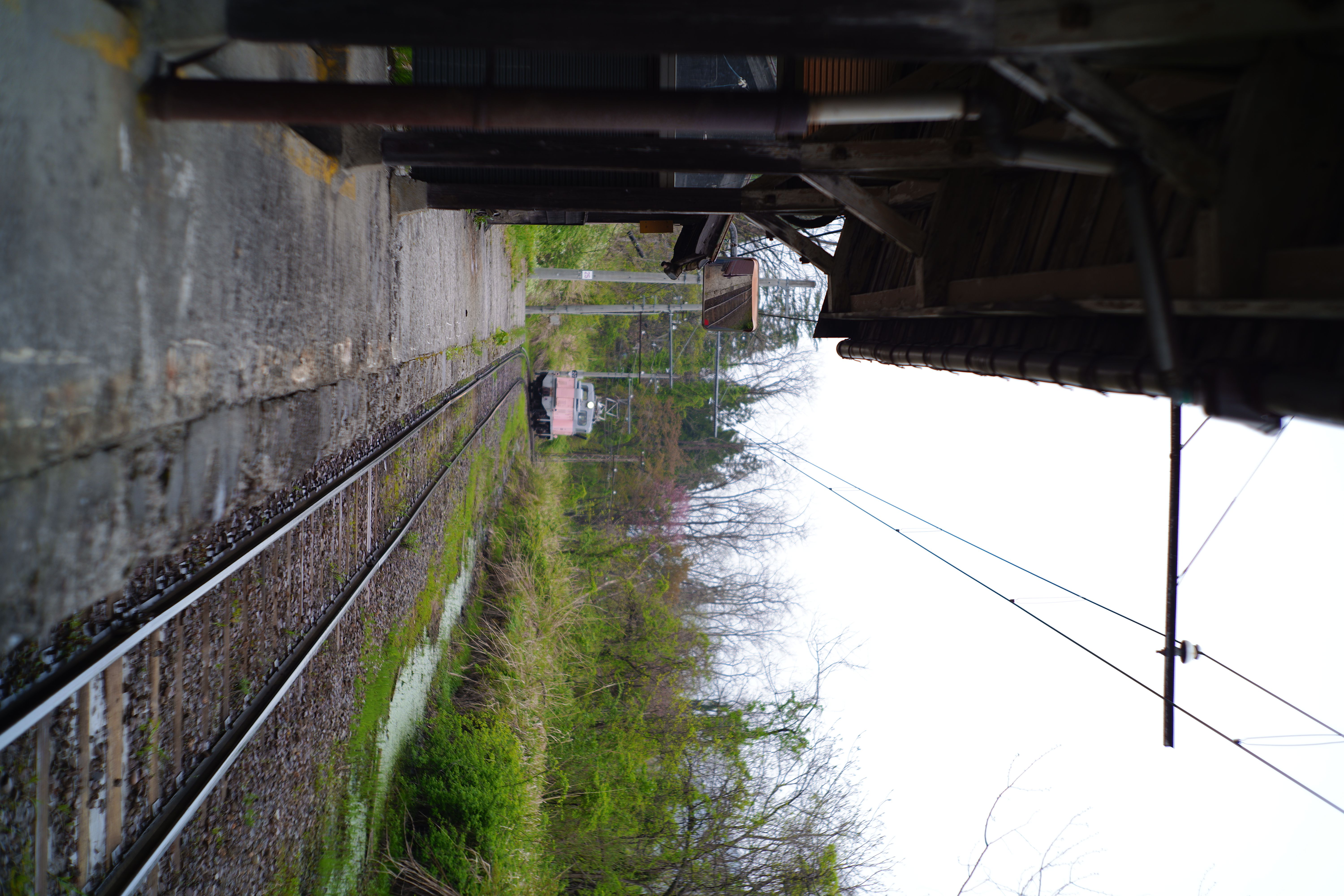 下山の列車はどこで撮るか悩んで、疲れていたので千垣駅のスナップでお茶を濁してしまいましたが、これは反省すべき点で、恐らくは本宮の集落の中で山桜が線路沿いに植わっている場所があるのですが、そこで撮るべきでした。