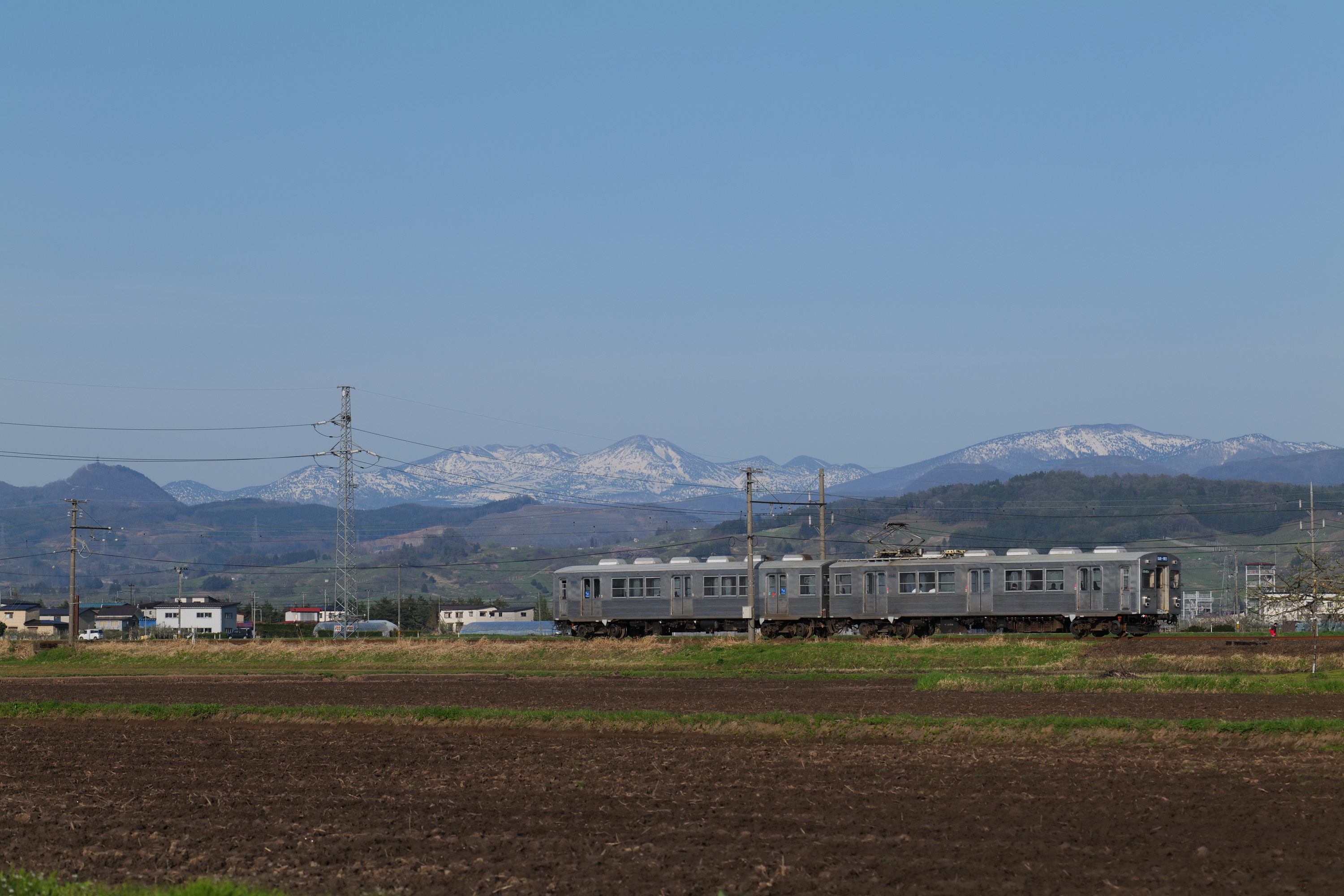 優先度としては大鰐線をメインで撮りたいなという気持ちと、せっかく八甲田山が見えているのでそれもカメラに収めたいという気持ちで義塾高校前の辺りを探してみたのですが、あまり良い場所が見当たらず、弘南線へ移動しました。
