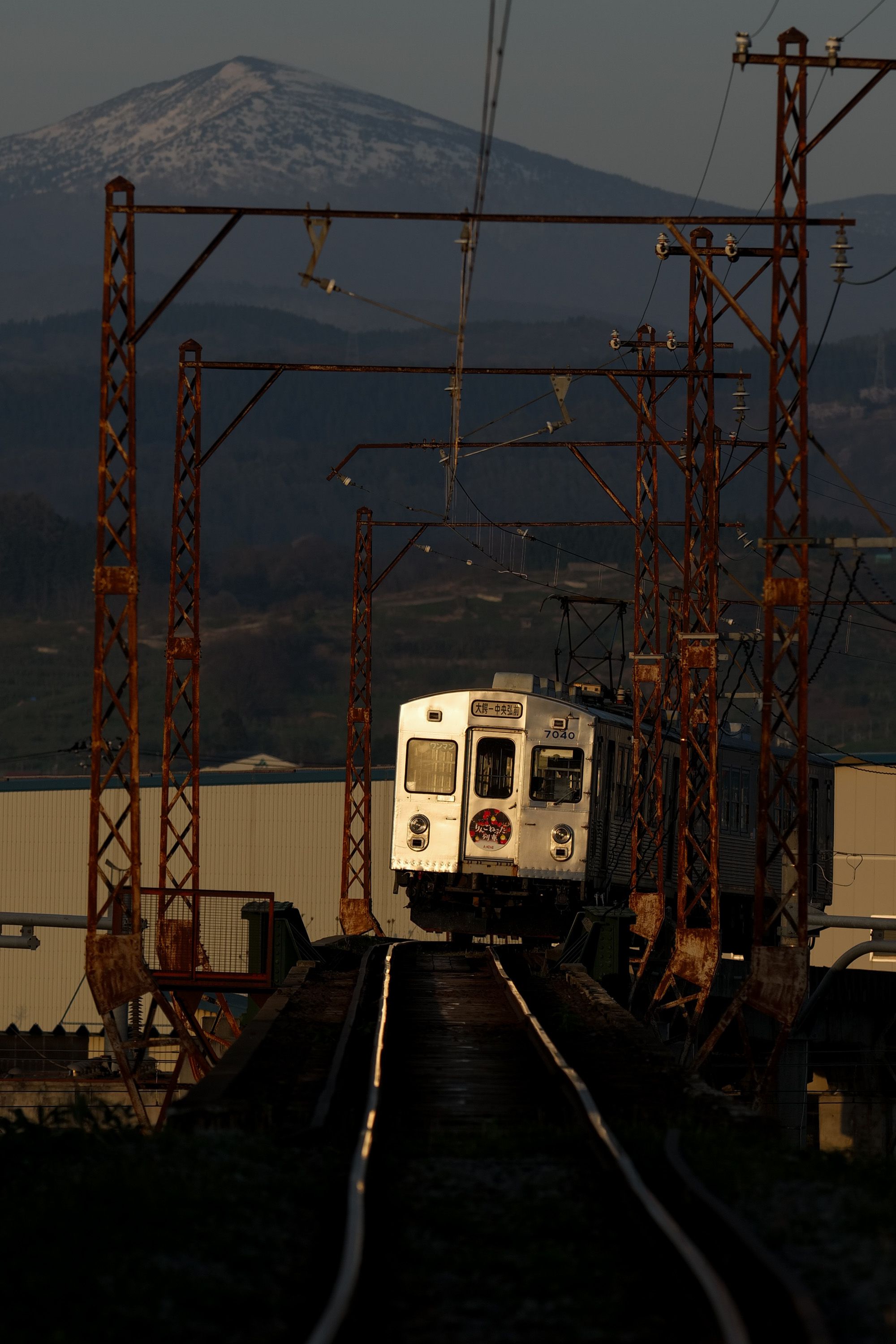 平賀の市街地を出てきた列車のギラリ…というには時間が早かったかもしれませんが、これもディスクブレーキが際立つ格好となり良いです。