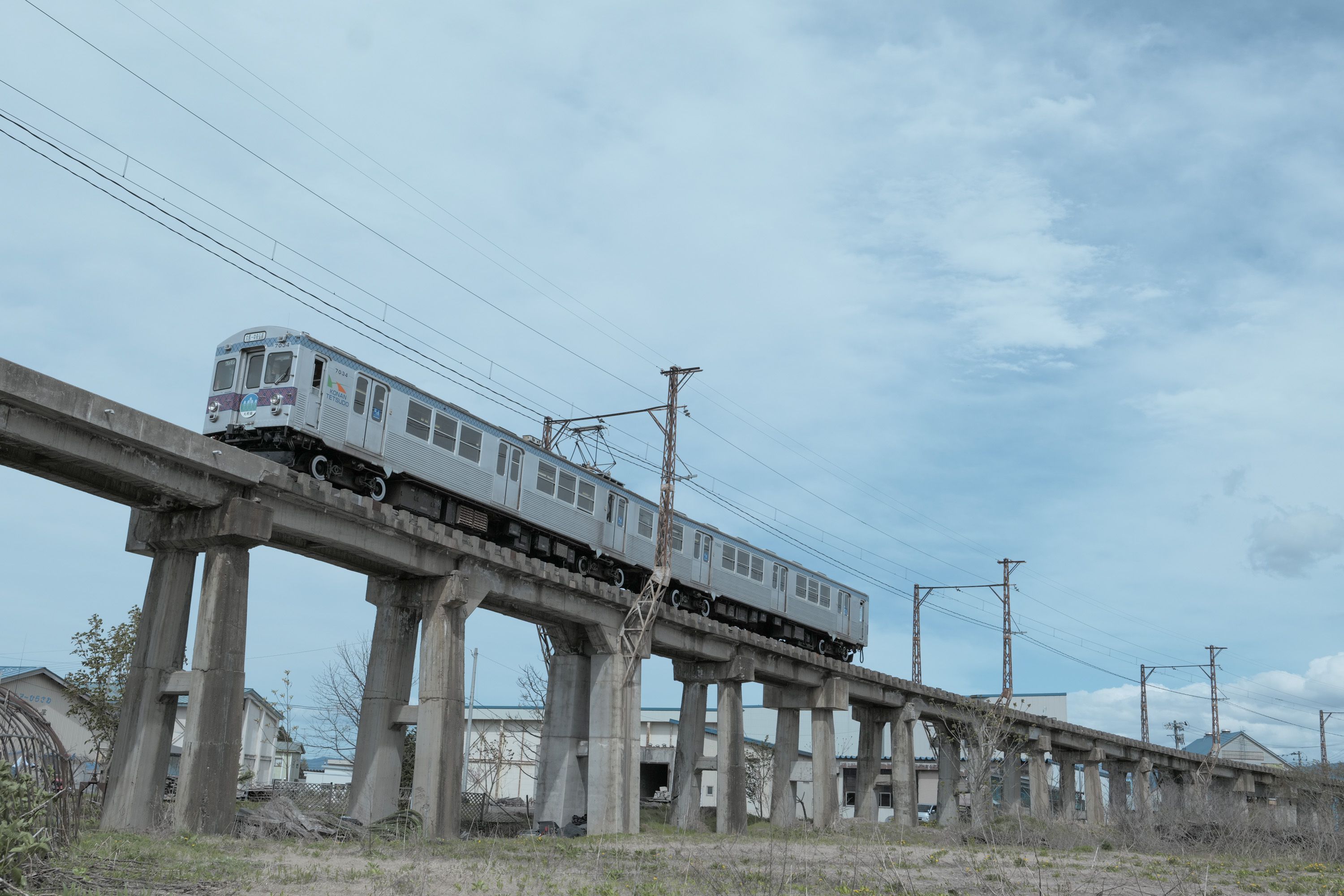 すっかり雲も増えてきて曇り空ですが、奥羽本線を跨ぐ高架を走るシーンを抑えてラストにしました。